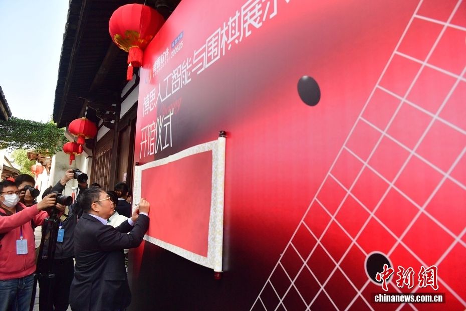 图为2021年12月1日,位于福建省福州市三坊七巷的博思人工智能与围棋展示馆举行开馆仪式,聂卫平在开馆仪式上签名。(图片来源:中新网)