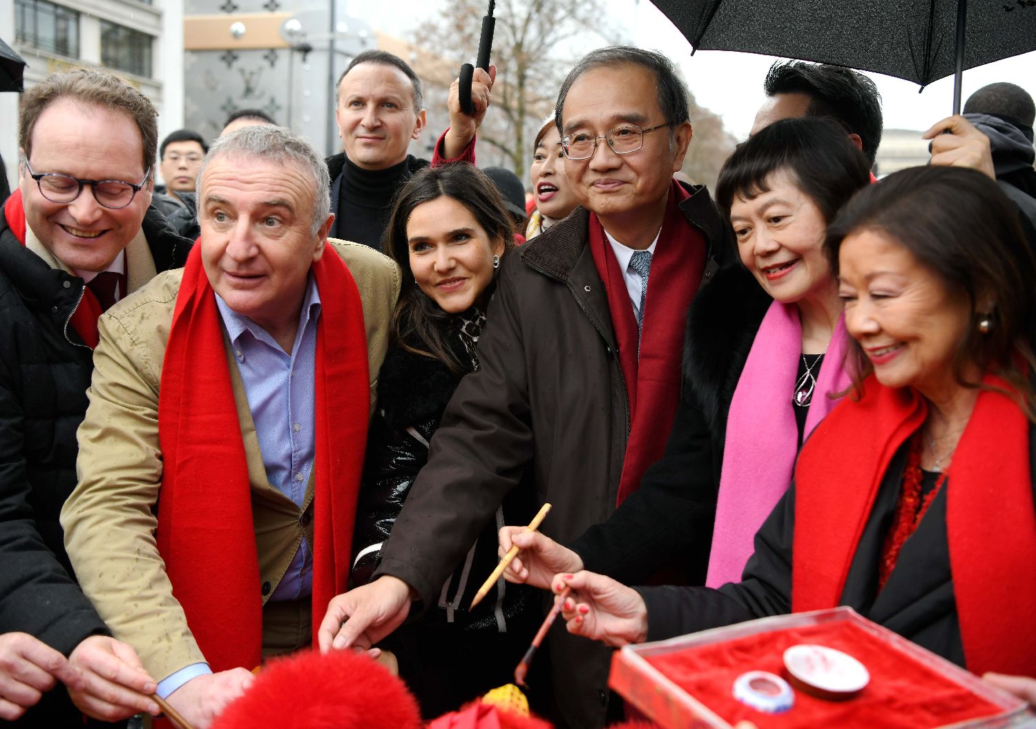 图为中国驻法国大使邓励及法中嘉宾为醒狮点睛。