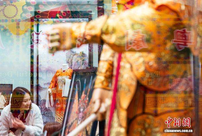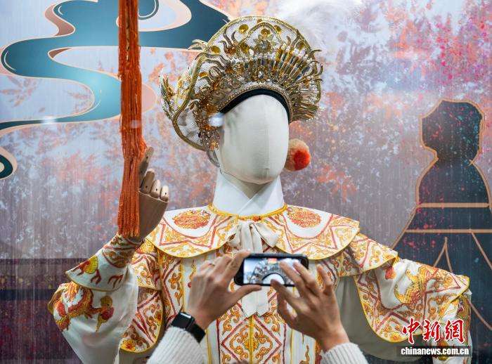 图为观众拍摄龙贯天的戏服展品的细节。(图片来源:中新网)