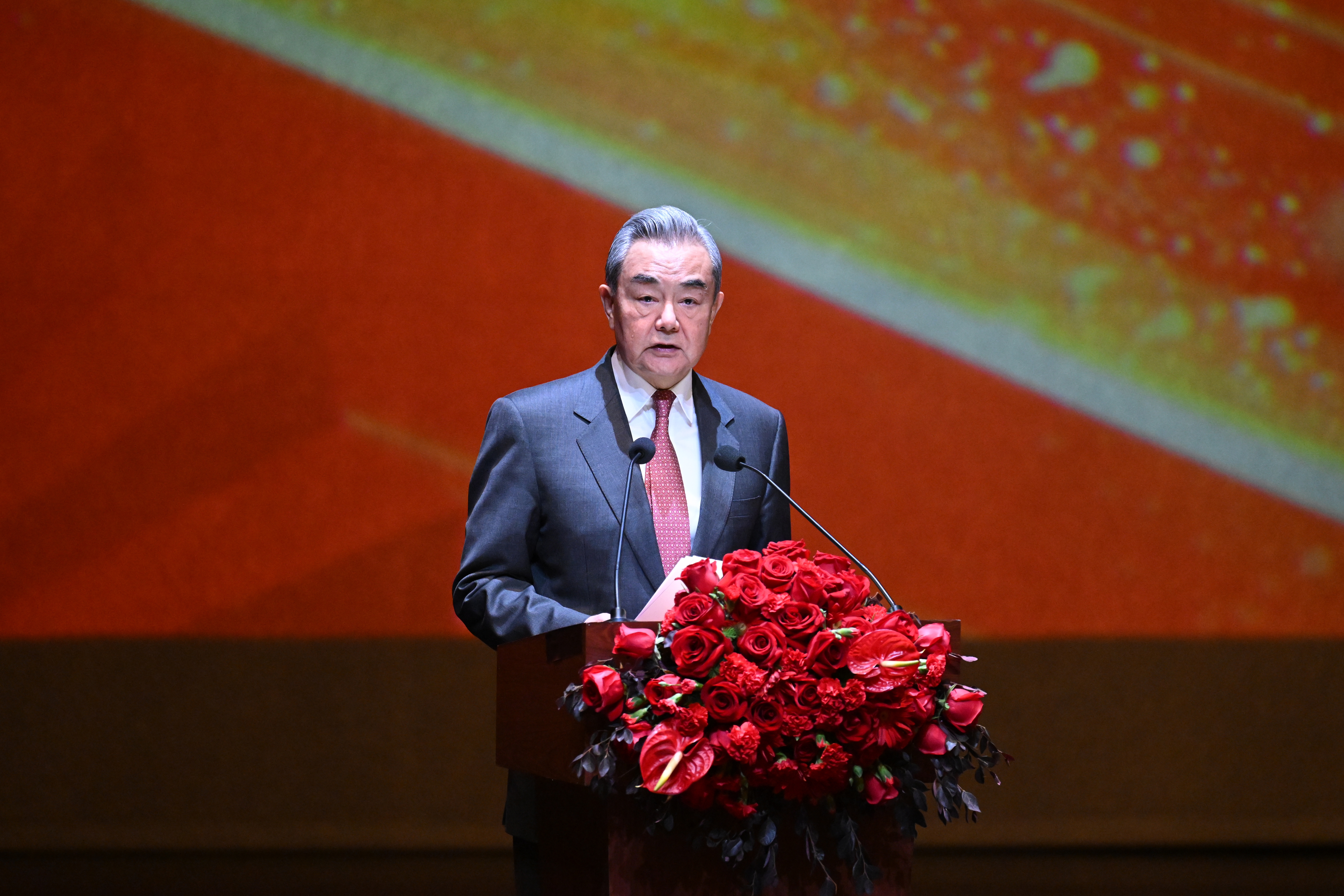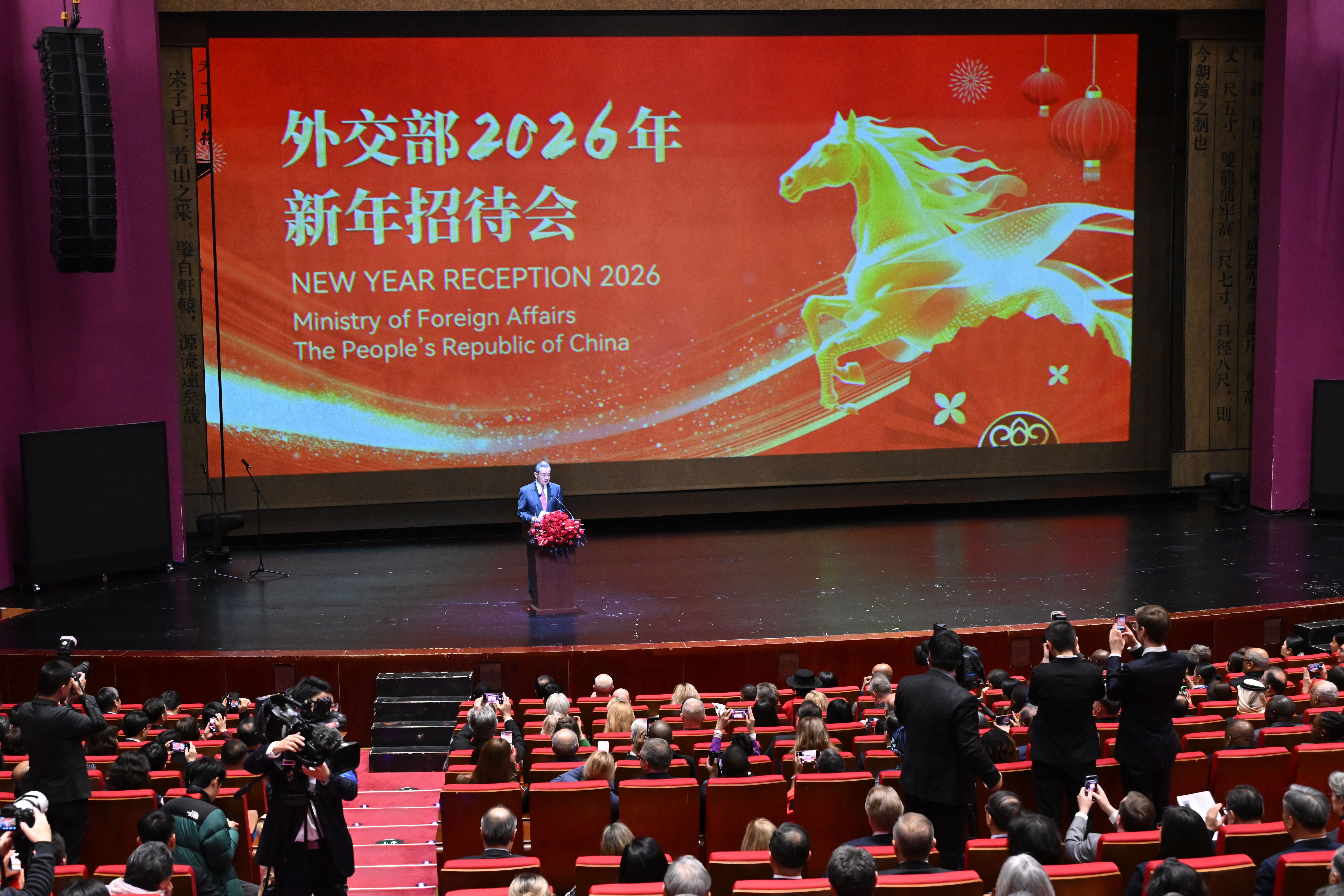2月5日,中国外交部在北京举行2026年新年招待会。各国驻华使节和国际组织驻华代表夫妇、中方各部门代表近500人出席。图为活动现场。
