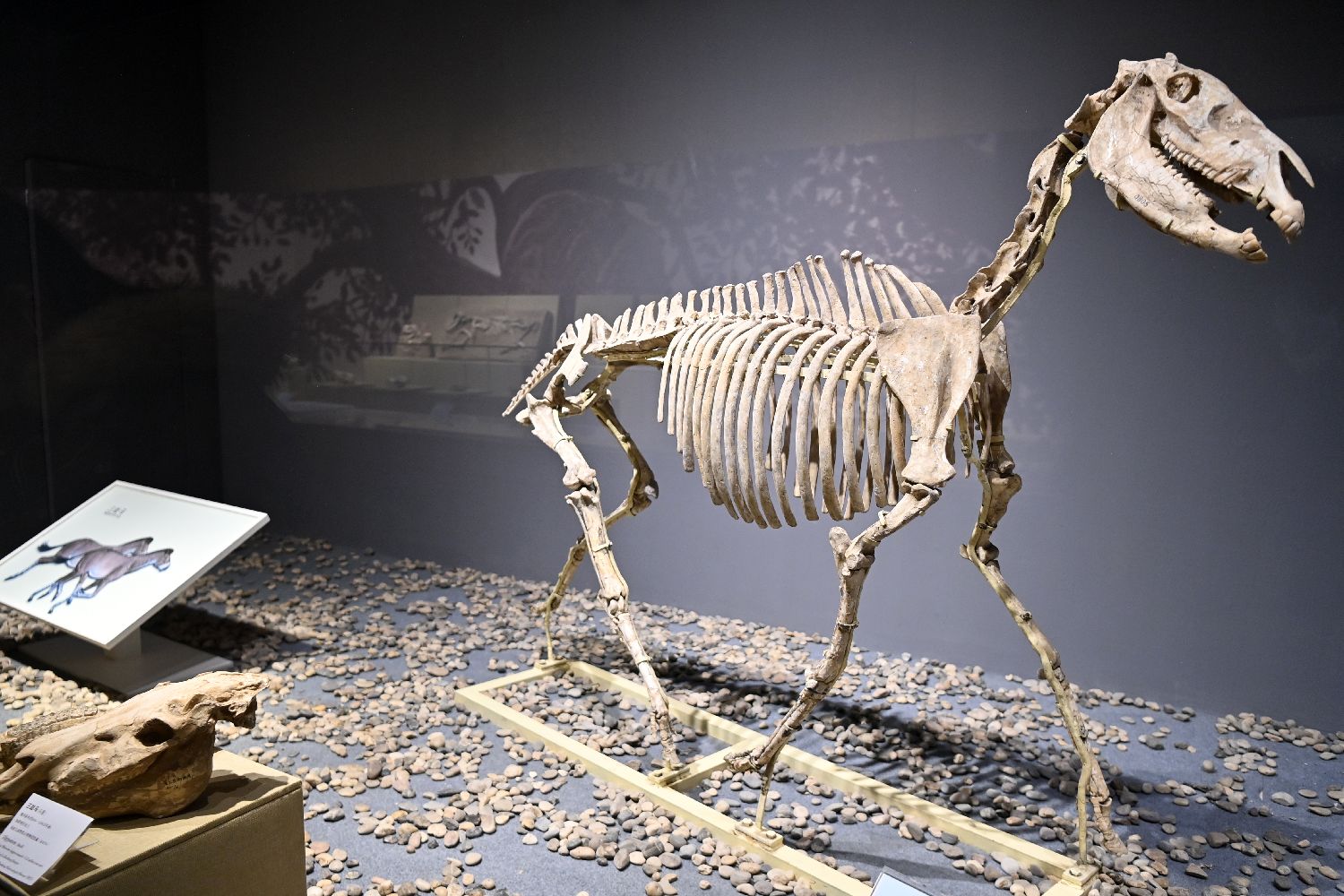 2月10日,在甘肃临夏州和政县古动物化石博物馆内展出的埃氏马头骨化石。