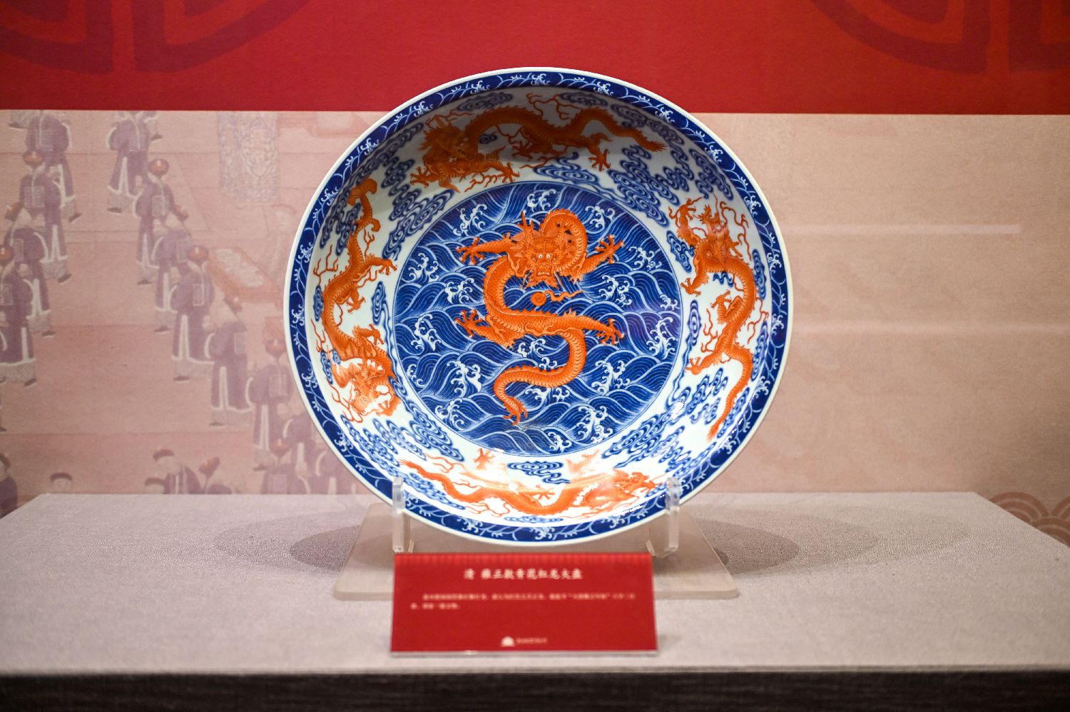 图为清雍正款青花红龙大盘。