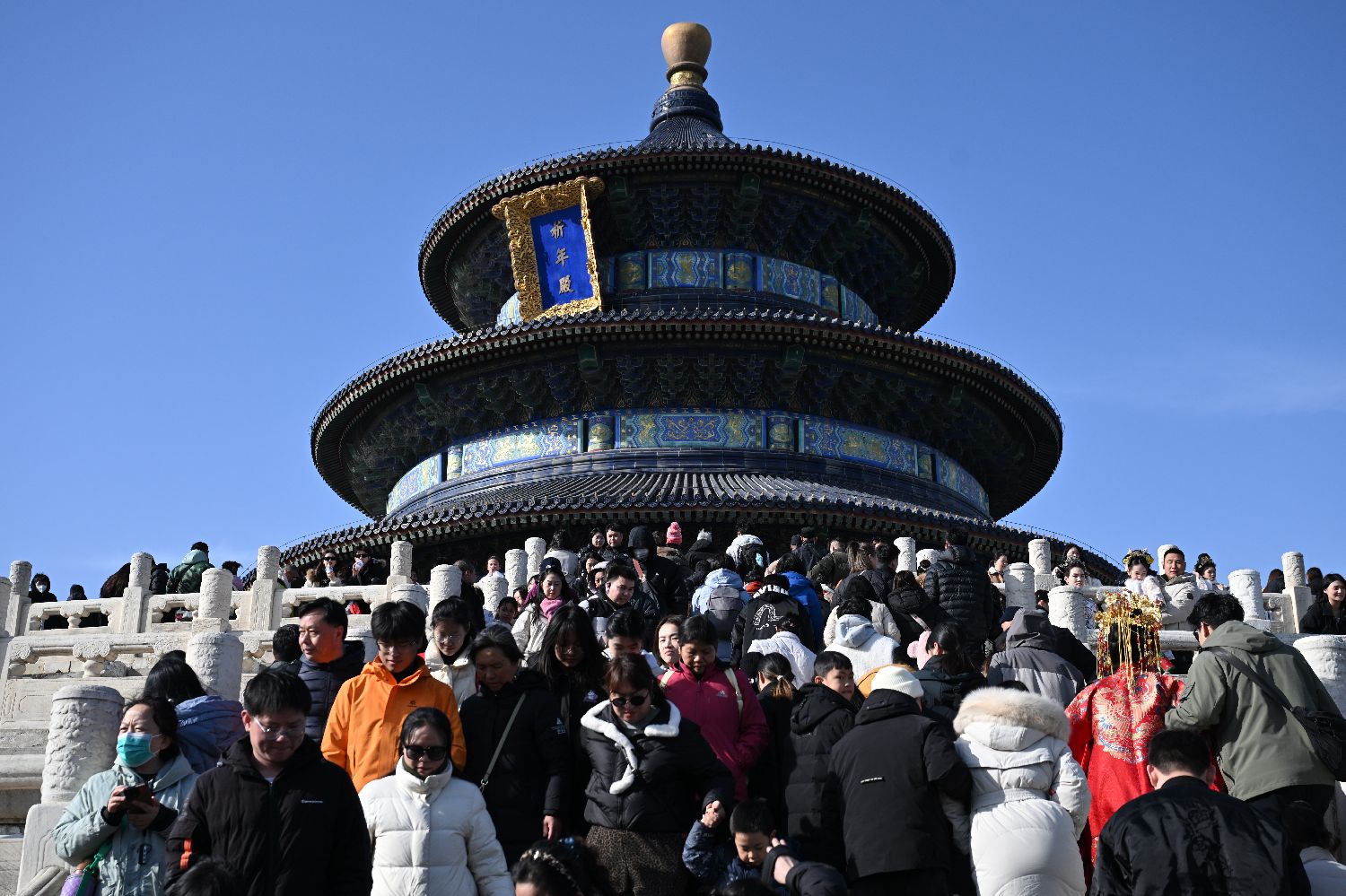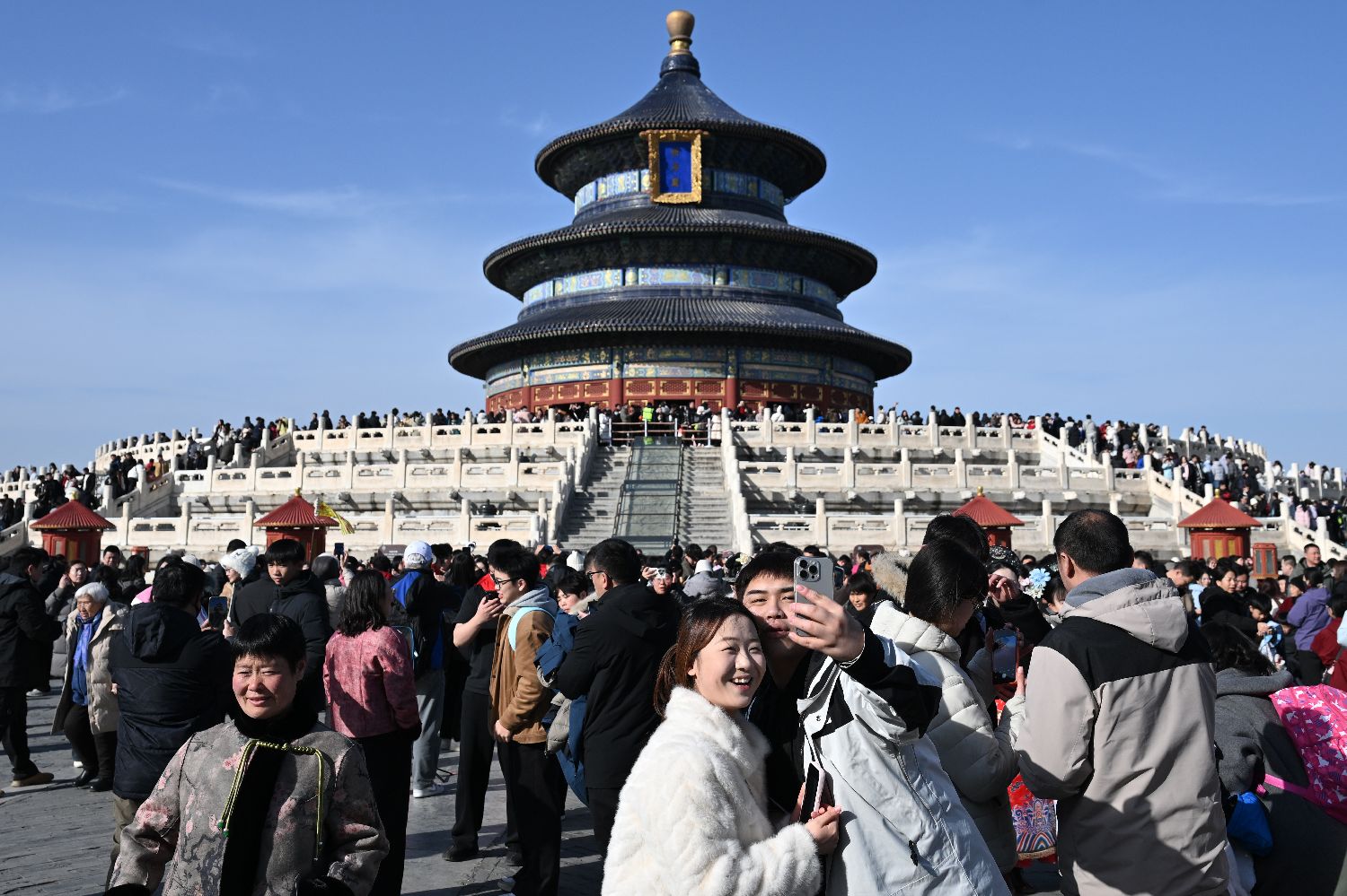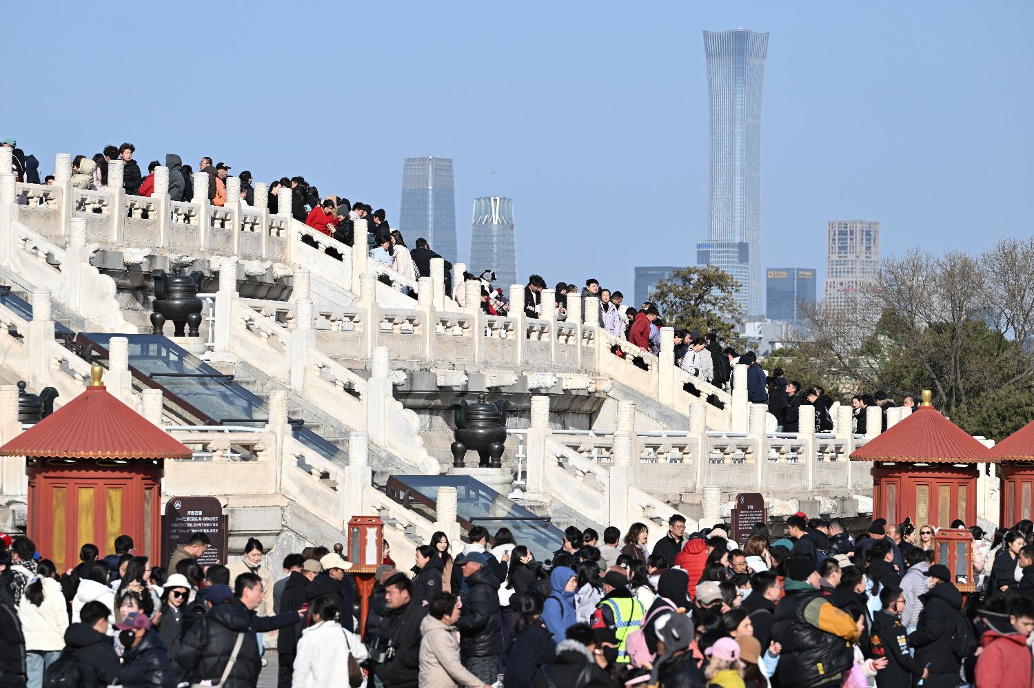 2月23日,春节假期最后一天,北京天坛公园游客络绎不绝。当日,北京全市公园共接待游客120.27万人次。据统计,9天长假,全市公园共迎来八方来客1258.50万人次,日均游客接待量139.28万人次,同比增长18.79%。其中,天坛公园、颐和园和圆明园遗址公园最受游客“青睐”,长假9天分别接待游客127.39万、111.13万和97.55万人次。(图片来源:本文图片均来自中新社)