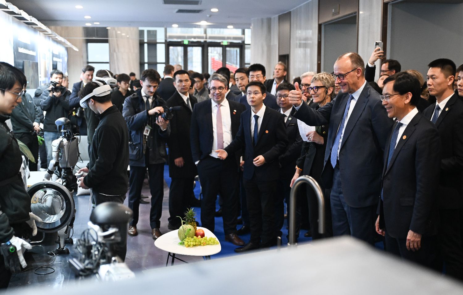 2月26日,德国总理默茨为中国人形机器人点赞。
