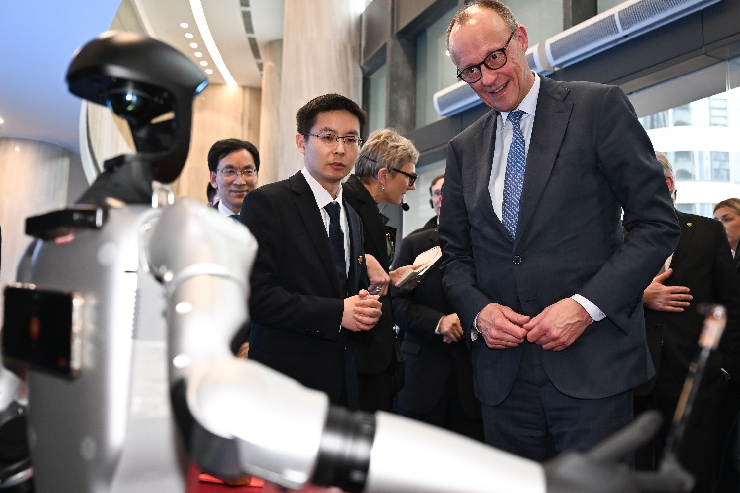 2月26日,德国总理默茨被人形机器人吸引。