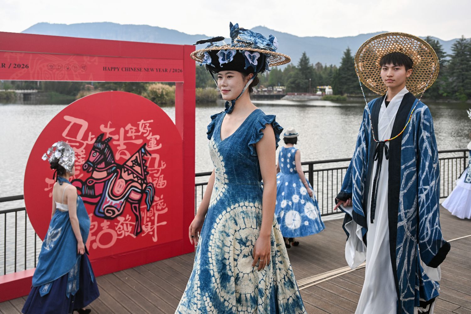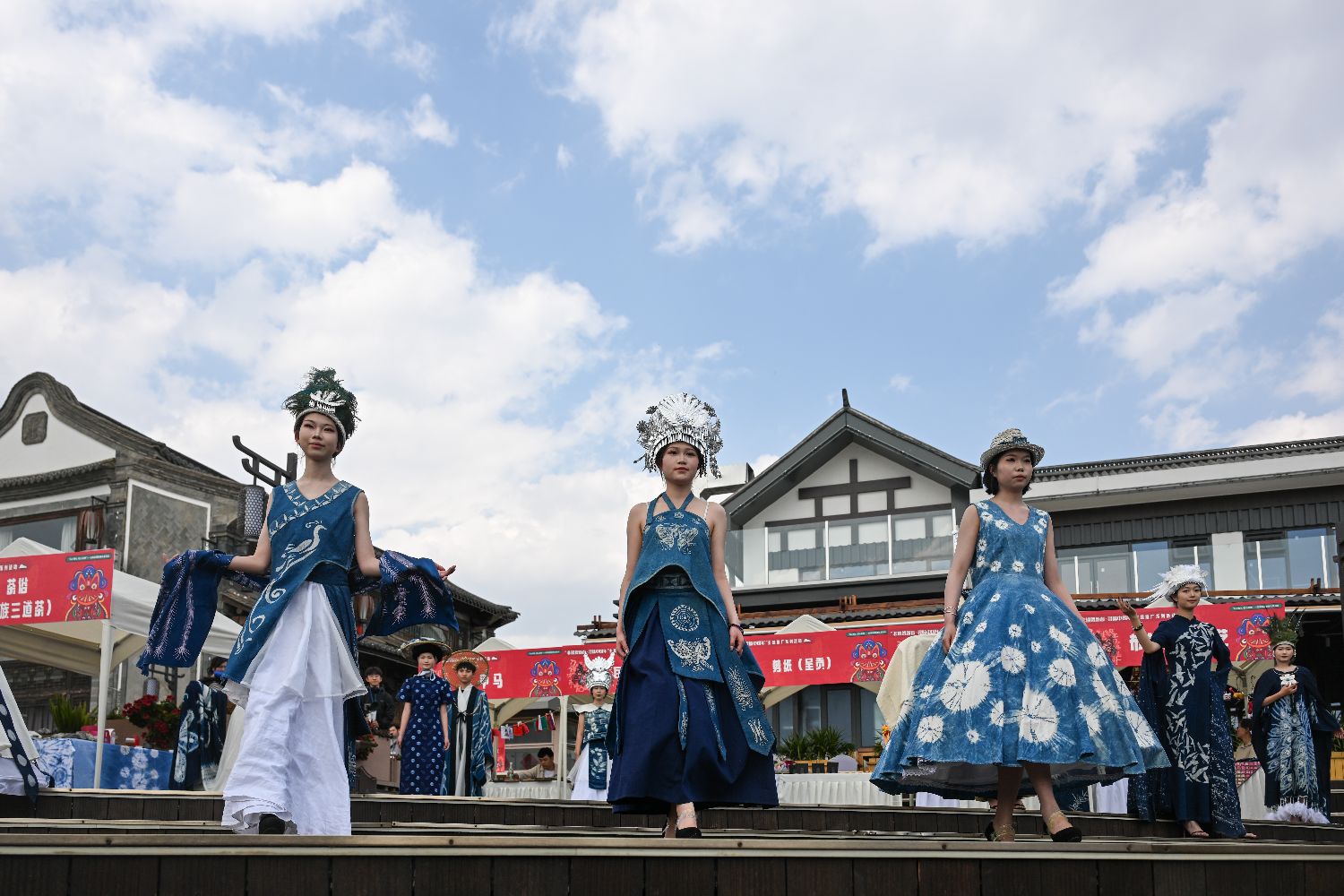 3月2日,模特展示蜡染技艺制作的民族服饰。当日,“昆明故城”文化街区上演云南非遗创新服饰秀,展现民族传统服饰与现代生活融合的独特审美。(图片来源:本文图片均来自中新社)