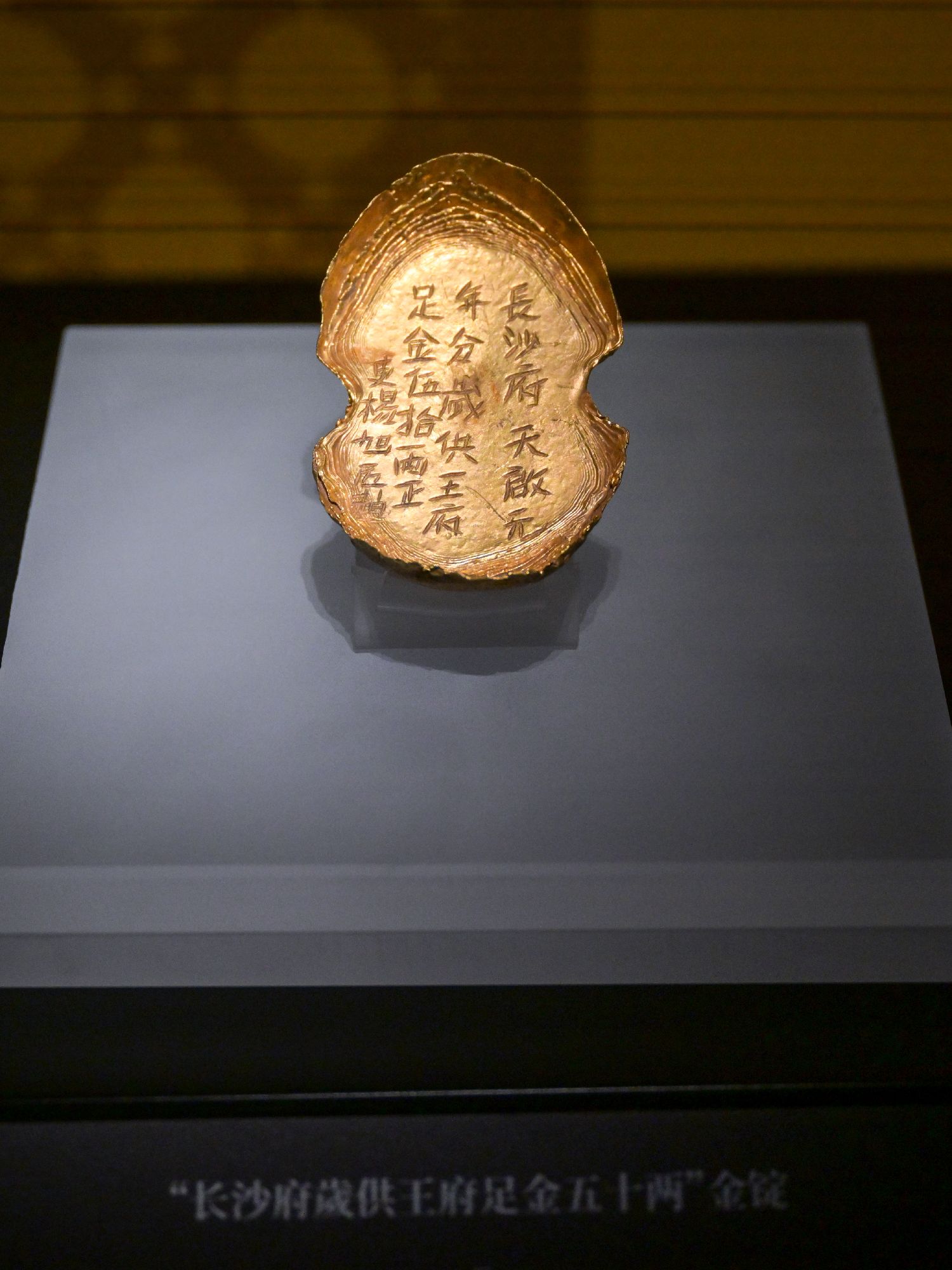 图为江口沉银博物馆展陈的文物五十两金锭。