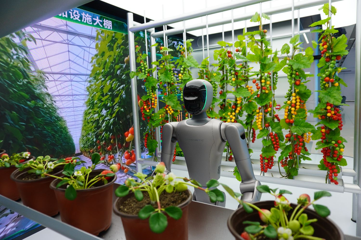 图为店内展示的能授粉、采摘的农业机器人。(图片来源:中新社)
