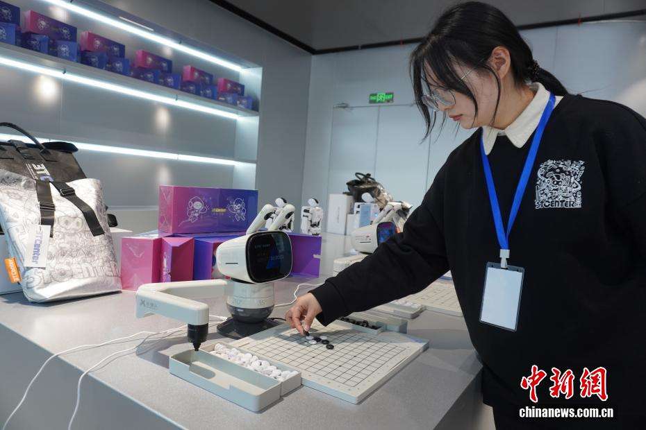 图为工作人员与机器人下棋。(图片来源:中新网)