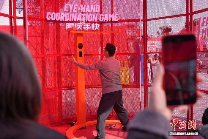 图为车迷现场体验“眼疾手快”项目,感受F1车手的日常反应训练。(图片来源:中新网)