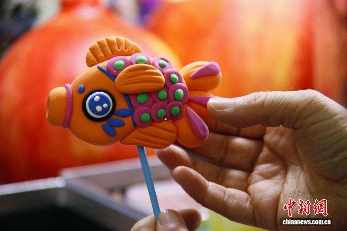 图为郗丽霞制作的面塑鱼。