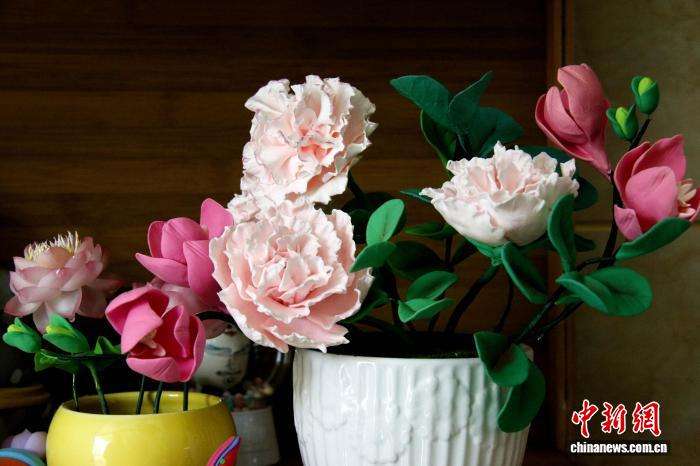 图为郗丽霞制作的面塑花。