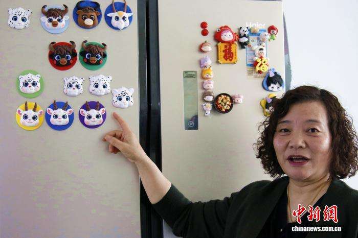 图为郗丽霞制作的面塑冰箱贴。
