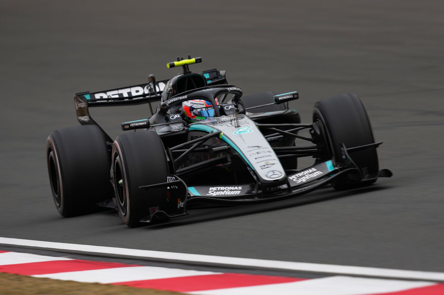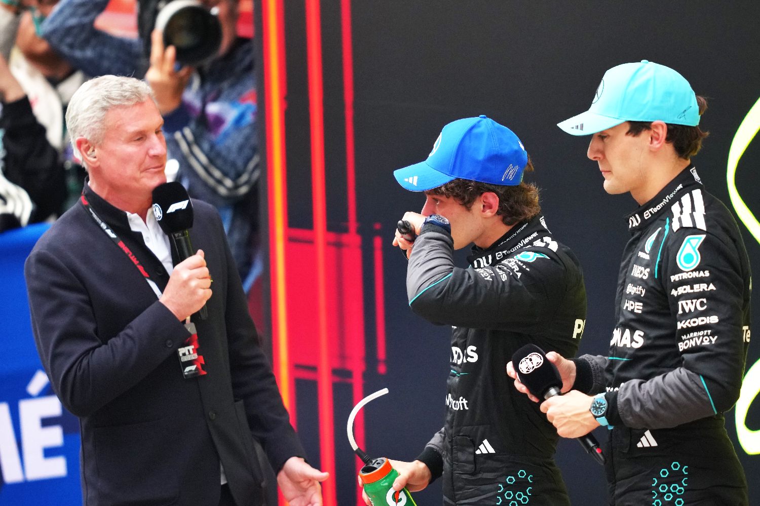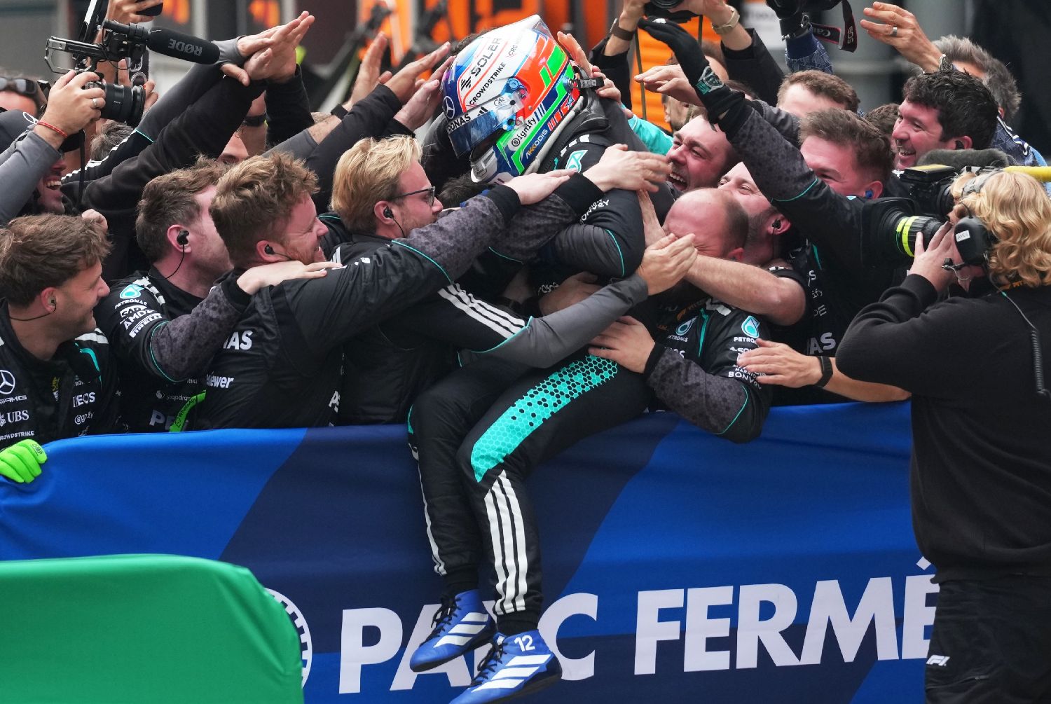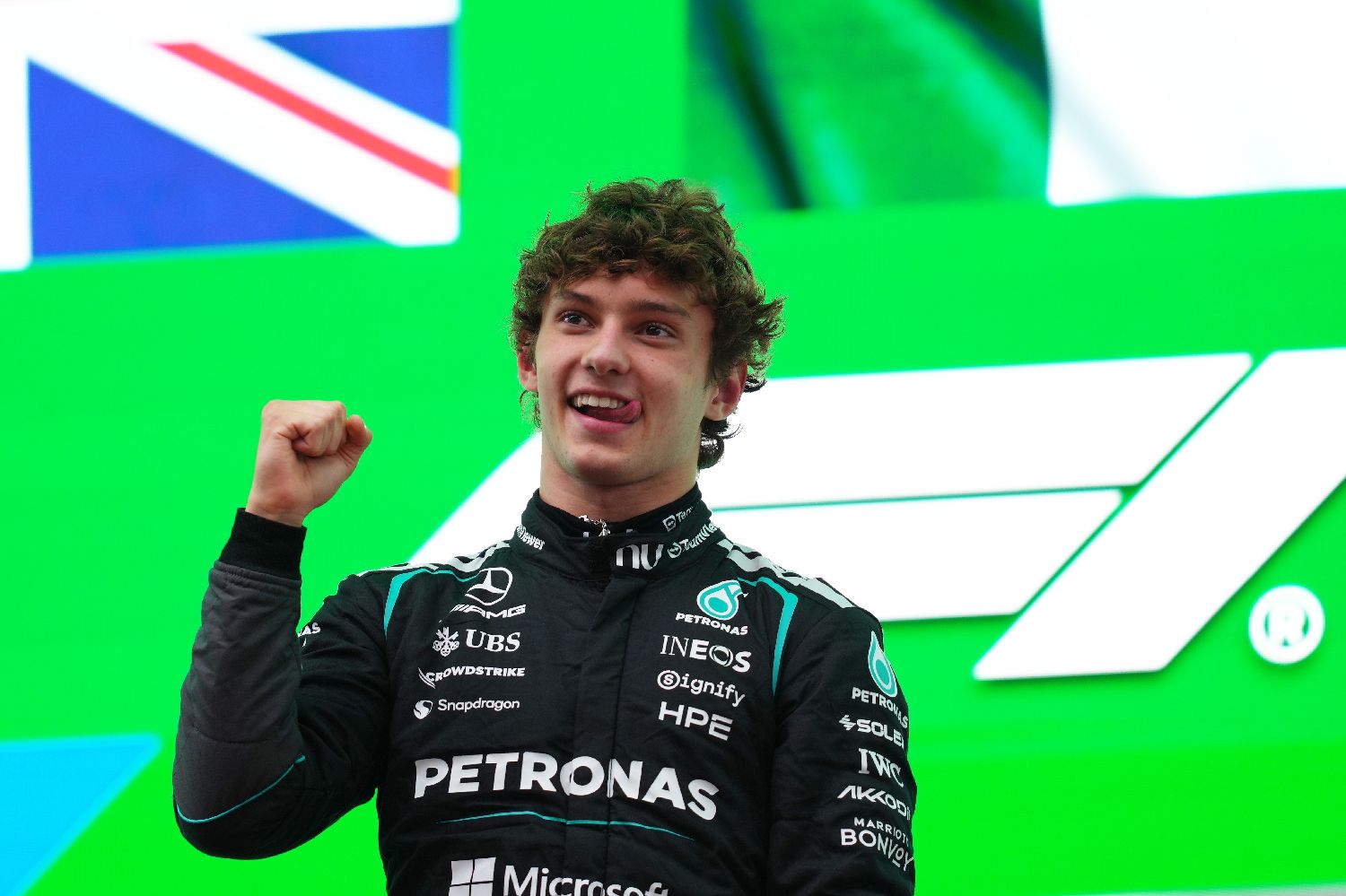 3月15日,2026年F1中国大奖赛正赛在上海国际赛车场举行。最终梅赛德斯-AMG车队的19岁意大利车手安德烈亚·基米·安东内利获得冠军,这是他职业生涯的首个正赛冠军。图为安东内利庆祝夺冠。(图片来源:本文图片均来自中新社)
