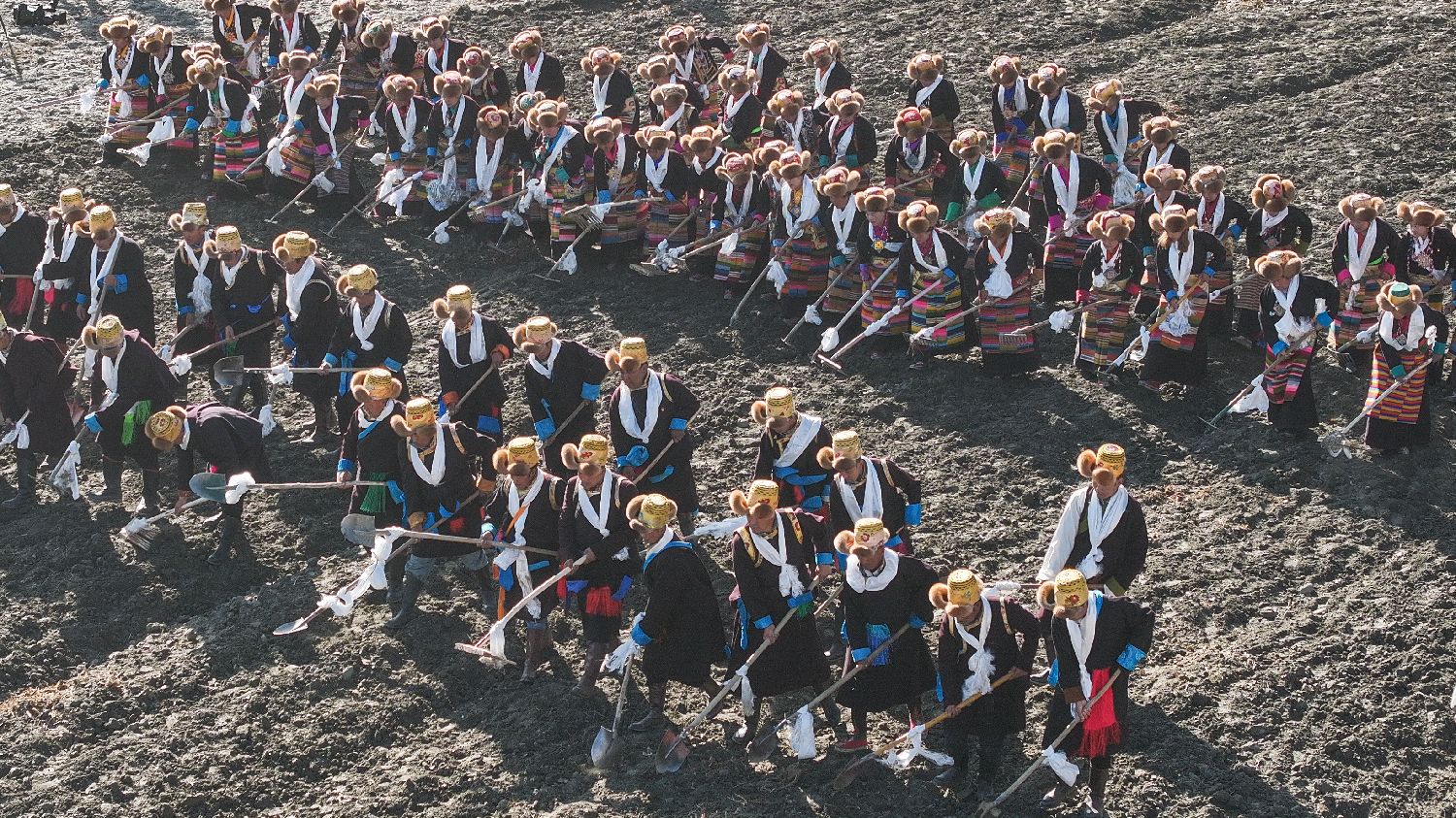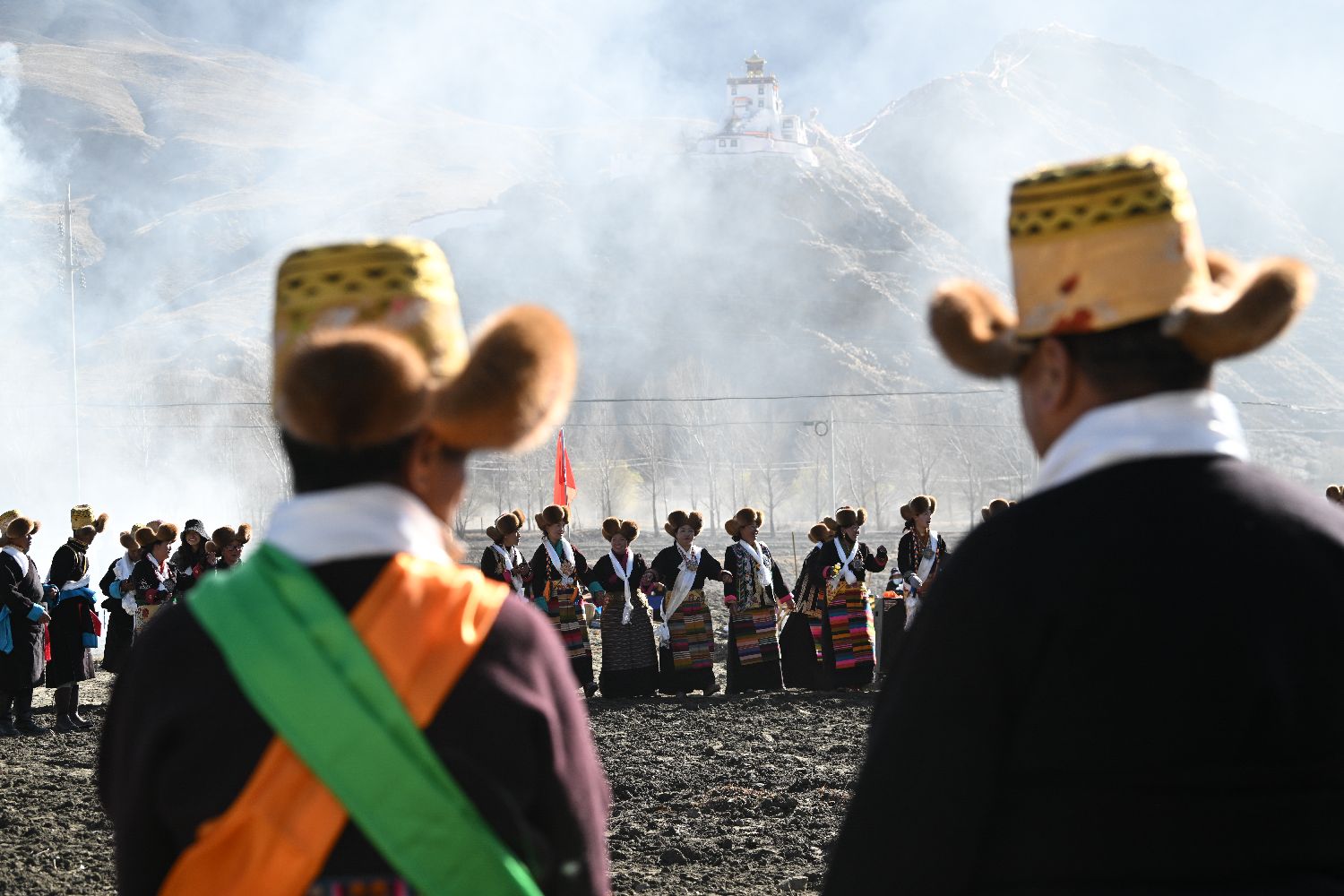 图为西藏山南市乃东区门中岗社区春耕仪式现场。