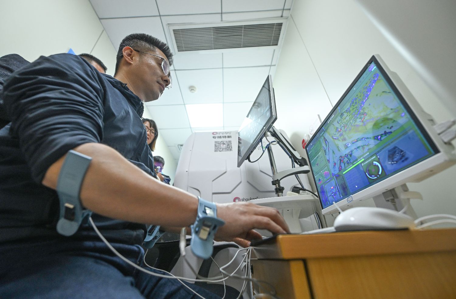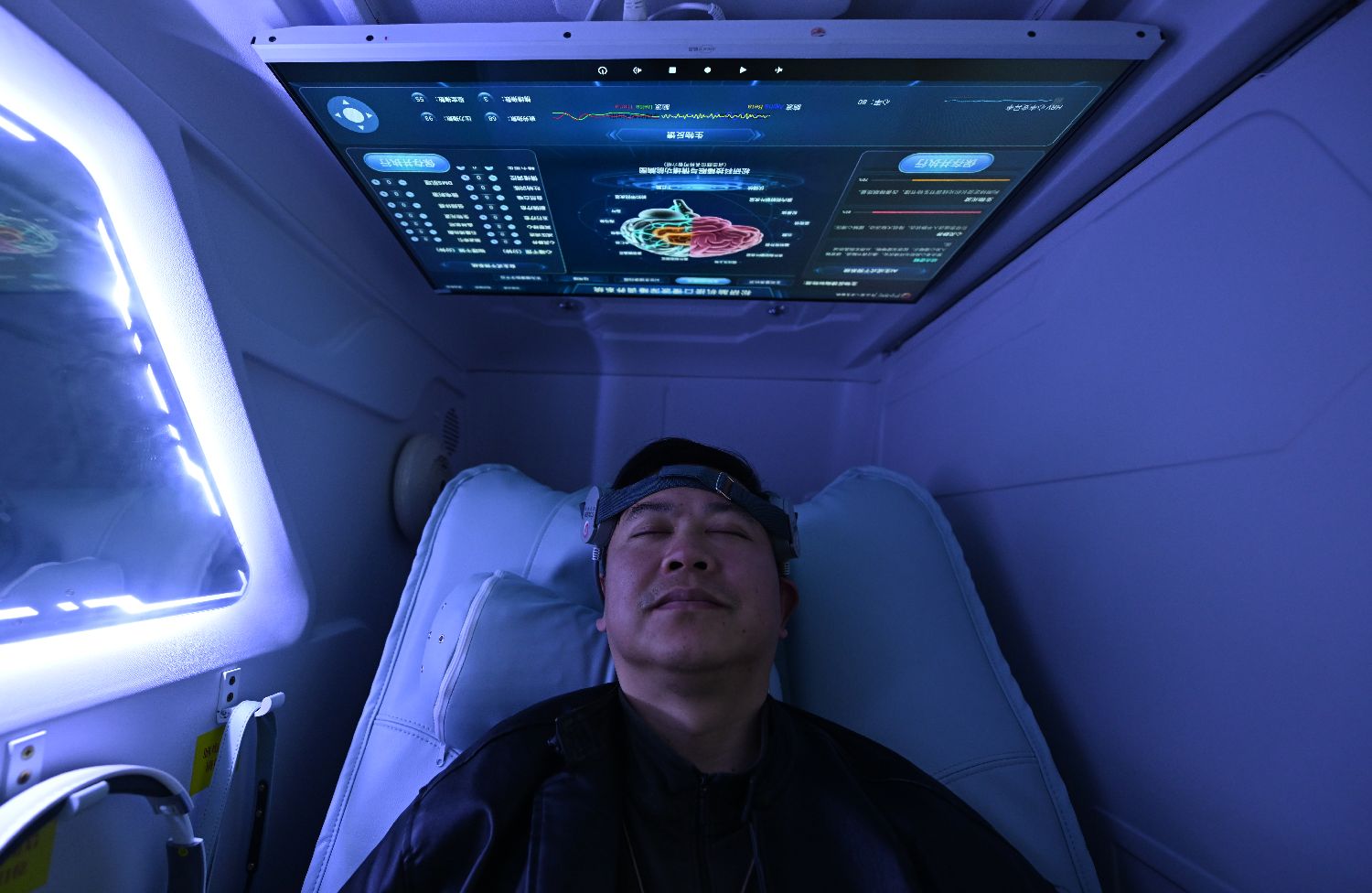 3月19日,民众在“睡眠小屋”体验睡眠相关指标的检测。