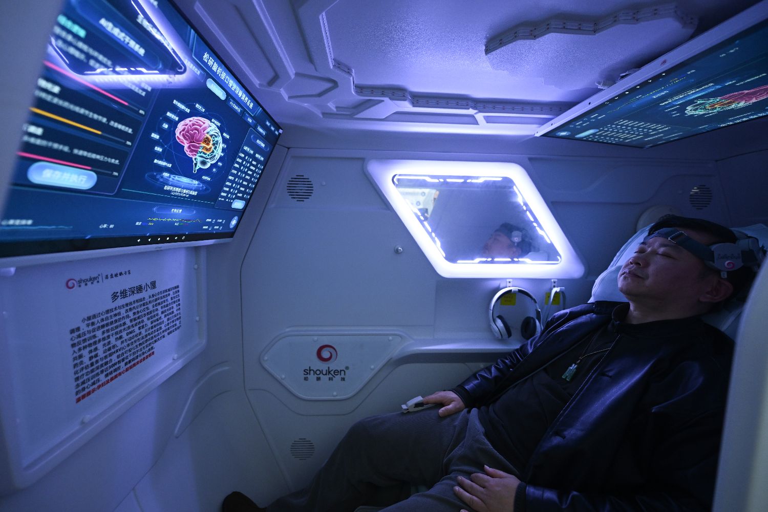 3月19日,民众在“睡眠小屋”内体验“科技助眠”。