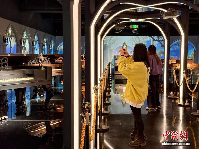 3月25日,成都芯智慧音乐博物馆吸引不少观众前去探访。馆内收藏来自世界各国的古董钢琴等乐器300余件,运用3D影像、数字场景还原等科技手段,让观众在享受美妙旋律的同时,还能深入了解音乐背后的故事和乐器发展的技术革新。图为成都芯智慧音乐博物馆展馆展出的钢琴。(图片来源:本文图片均来自中新网)
