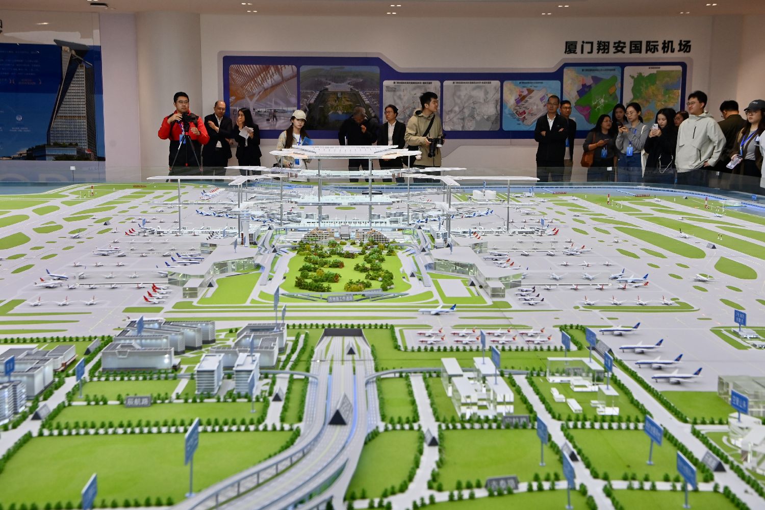 3月30日,媒体参观厦门翔安国际机场建设沙盘。