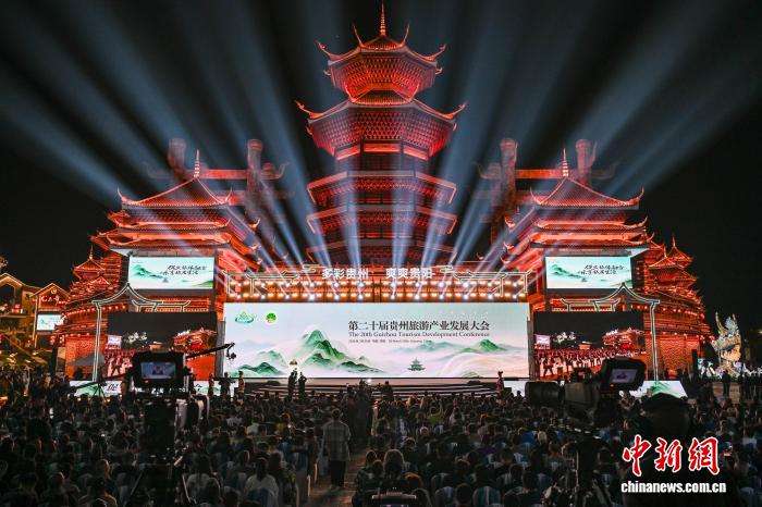 3月30日晚,第二十届贵州旅游产业发展大会在位于贵阳市的多彩贵州城开幕。本届大会以“促文旅体融合·乐享旅居生活”为主题,构建了“1+4+N”的活动体系,即:1场开幕式、4个专项领域主体活动和多个文旅体配套体验活动,全方位展现贵州文旅体新魅力。图为开幕式现场。(图片来源:本文图片均来自中新网)