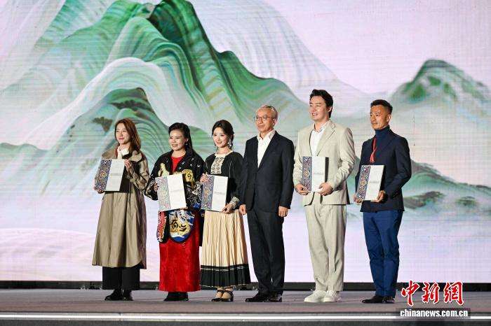 3月30日晚,龚琳娜(左二)、毛晓彤(左三)、张英席(右二)等受聘为贵州文化和旅游推广大使。