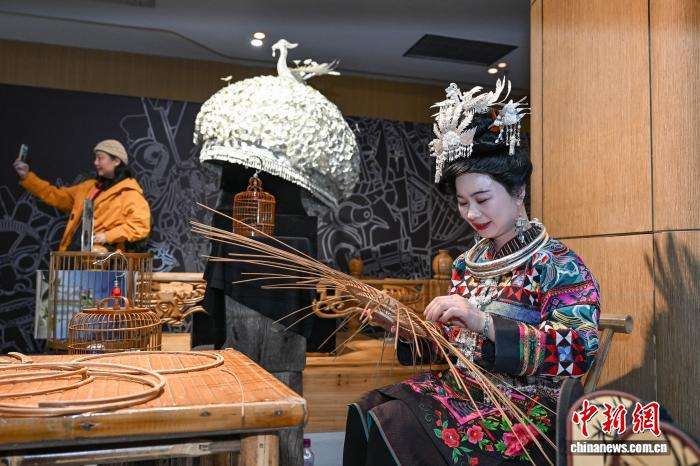 3月30日晚,非遗所思·匠心潮动主题展上的贵州丹寨卡拉鸟笼制作。