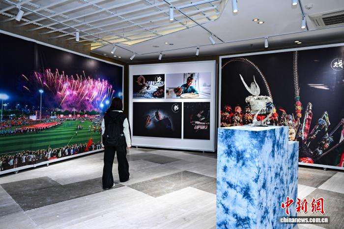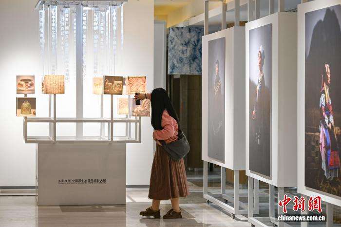 3月30日晚,多彩贵州城原生态文化艺术中心内的摄影作品吸引参会人员。