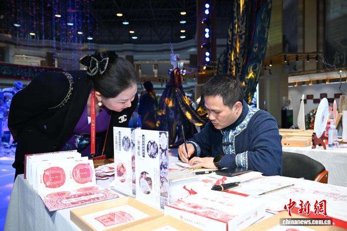 3月30日晚,非遗所思·匠心潮动主题展上的贵州思南“囍”文化刻纸吸引参会人员。