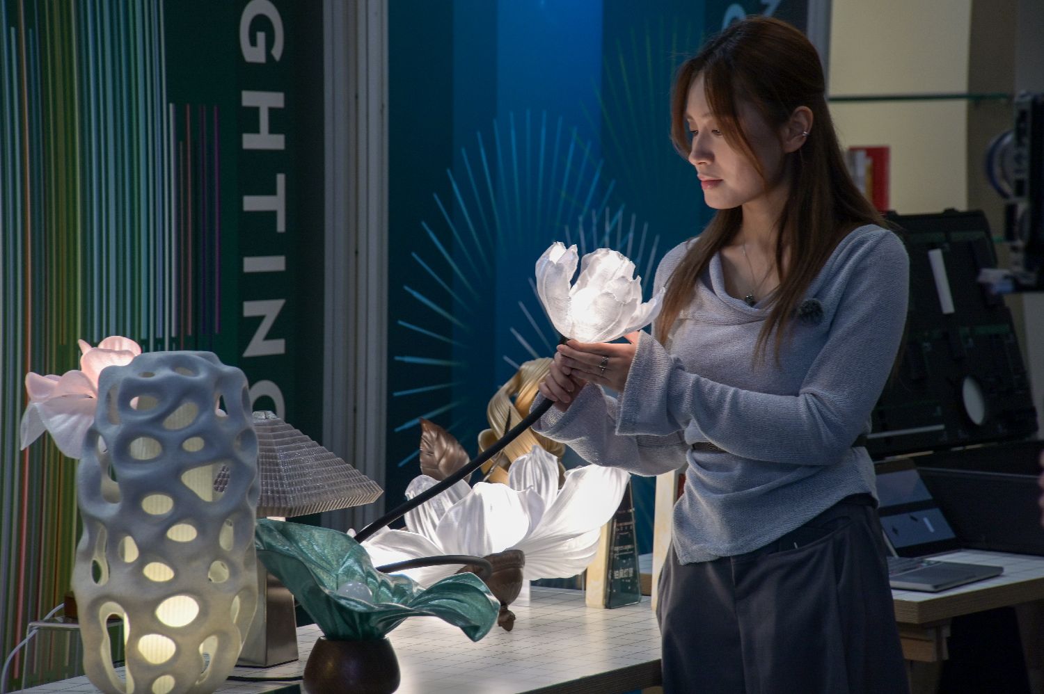 4月1日,香港贸易发展局举行新闻发布会,介绍即将举行的四大科技展,包括第4届香港国际创科展、第22届香港春季电子产品展、第17届香港国际春季灯饰展和第3届智慧照明博览。四大科技展将汇聚来自28个国家和地区的超过3700家展商。其中,香港国际创科展、香港春季电子产品展将设置“RoboPark”机器人展区,展示超过100台应用于不同场景的机器人。图为展出的灯饰展品。(图片来源:中新社)