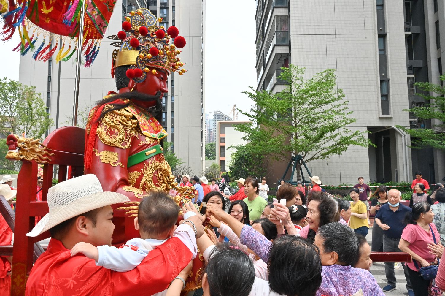 3月31日,在广州市黄埔区,“波罗诞”千年庙会迎来“正诞日”。“波罗诞”被称为“南海神诞”,是为纪念南海神祝融生日设立的庙会,于2011年被列入中国国家级非物质文化遗产名录,是岭南地区历史最悠久的民俗盛会之一。图为村民抬着“长案”神像巡游祈福。据民间传说,南海神祝融有5个儿子,名字中均带有“案”字。自明代以来,每到“正诞日”,十五乡的村民身着盛装,抬着“五案”神像送至南海神庙中庭,为南海神祝寿。(图片来源:本文图片均来自中新社)