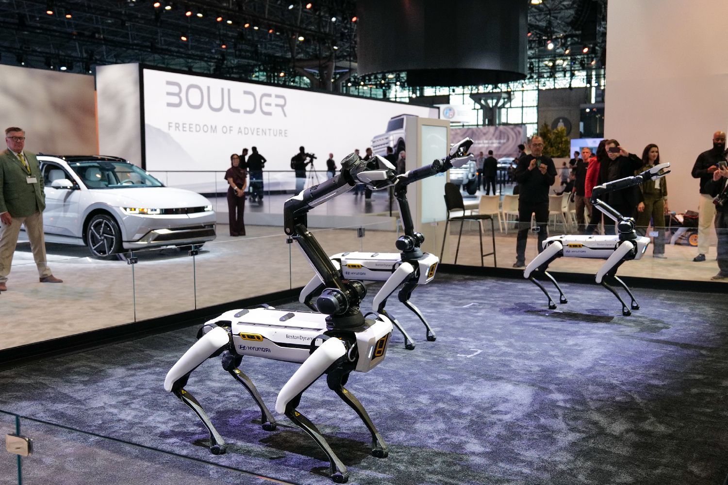 4月1日,2026年纽约国际车展在美国纽约贾维茨会展中心启幕,展出来自全球数十家车企的700多款车型。图为现代汽车全新Boulder越野概念车亮相现场。(图片来源:本文图片均来自中新社)