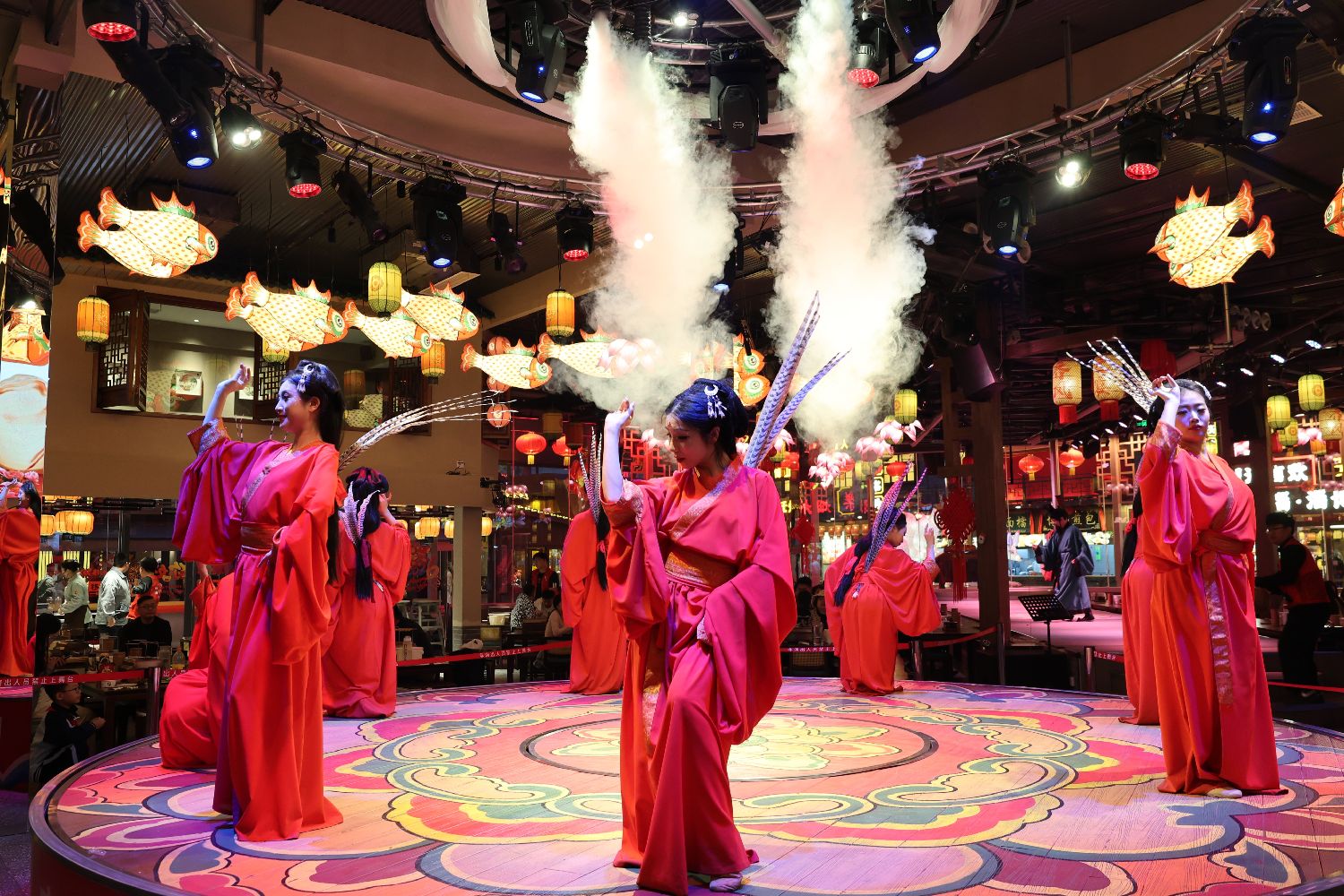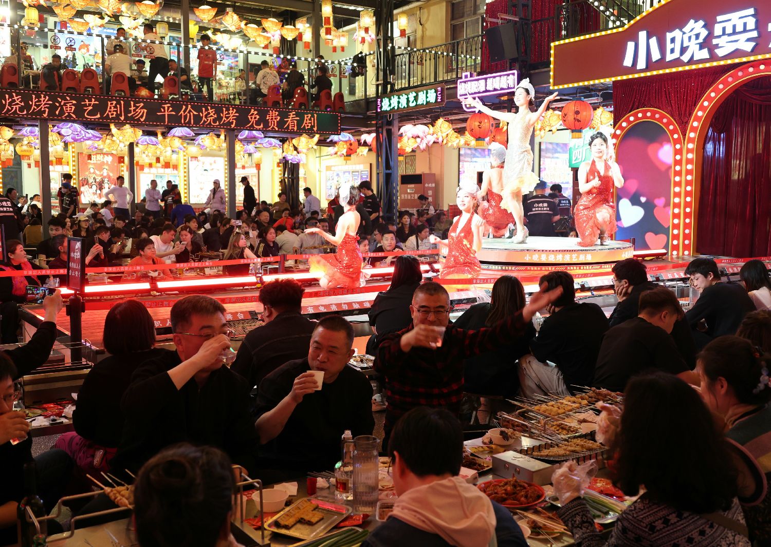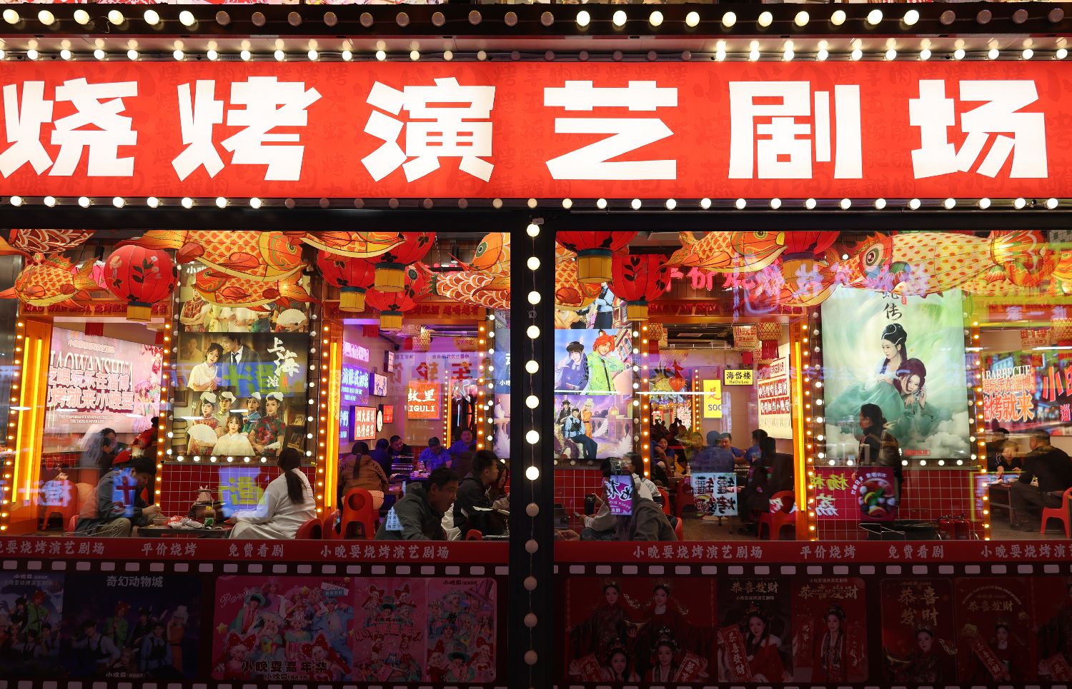 4月7日,烧烤店推出演艺剧场,以沉浸式情景剧、歌舞互动等形式打造网红打卡地,吸引市民游客夜间消费。