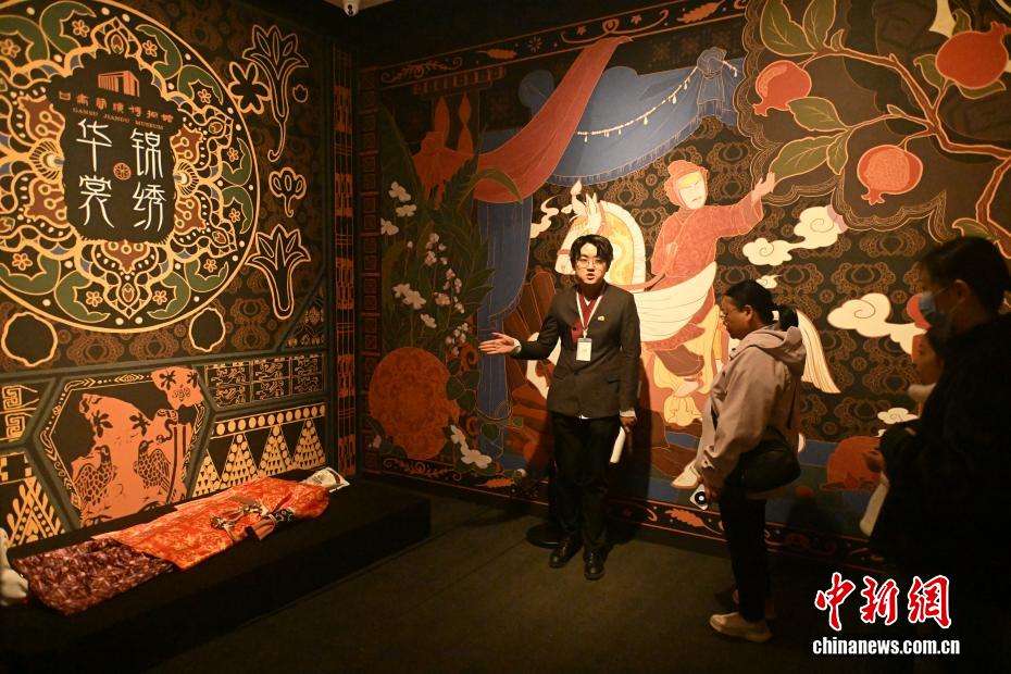 4月8日,工作人员向游客讲解跨越四千多年的时尚大秀。(图片来源:中新网)