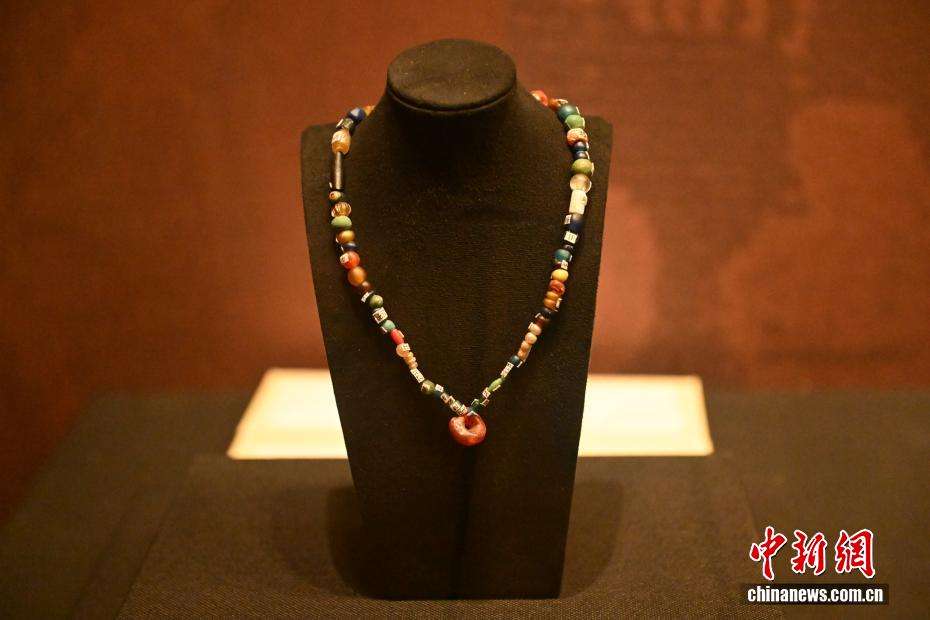 4月8日,在位于甘肃省兰州市的甘肃简牍博物馆“锦绣华裳”巴州博物馆藏古代服饰精品展展陈的若羌县罗布泊西岸采集的汉时期料珠。(图片来源:中新网)