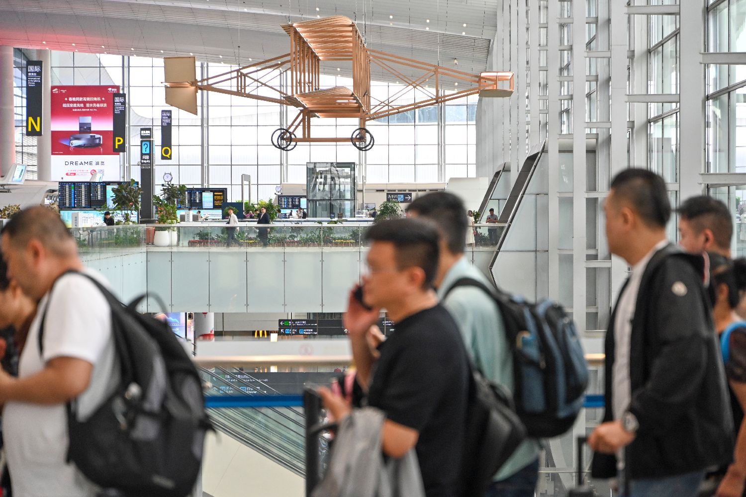 4月10日,“如·翼”主题艺术装置在广州白云国际机场T2航站楼内亮相。