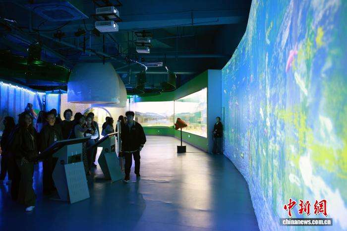 4月12日,浙江省欧美同学会组织浙江大学中国学留学生走进浙江丽水青田方山乡,实地探访首批全球重要农业文化遗产——青田稻鱼共生系统,近距离感受千年农耕智慧的活态传承与保护实践。图为留学生在稻鱼共生系统博物馆沉浸式观看数字投影。(图片来源:本文图片均来自中新网)