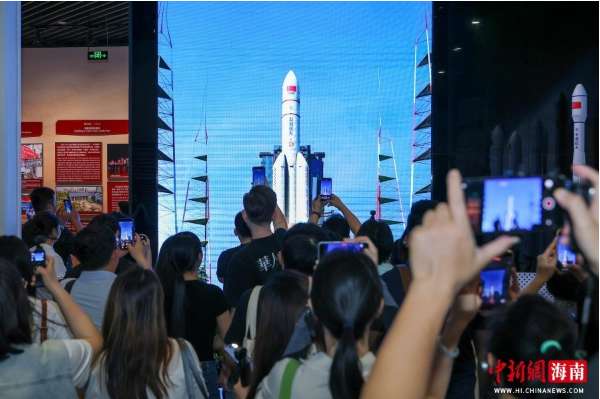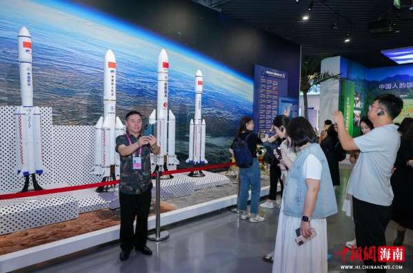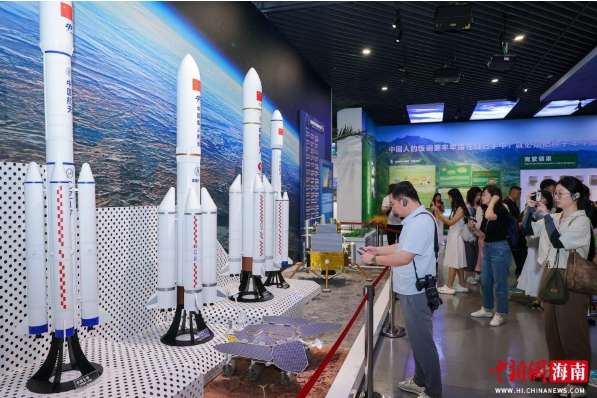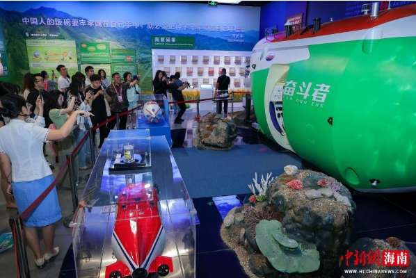 4月13日,在海南海口,“开局之年看中国·开放自贸港”网络主题传播活动走进海南史志馆,参观“海南全面深化改革开放和中国特色自由贸易港建设成果展”。图为展出的“奋斗者”号载人深潜器模型吸引采访团成员。