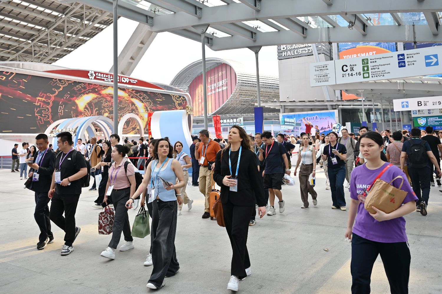 4月15日,第139届中国进出口商品交易会(广交会)在广州市开幕迎客。本届广交会于4月15日至5月5日分三期举办,展览总面积155万平方米,展位总数7.57万个,参展企业超3.2万家,均超往届水平。其中,约3900家企业首次亮相。本届广交会展品专区增至179个,首次增设智能穿戴、显示技术、消费级无人机、集成房屋及庭院设施等9个专区。图为广交会展馆人流如织。(图片来源:本文图片均来自中新社)