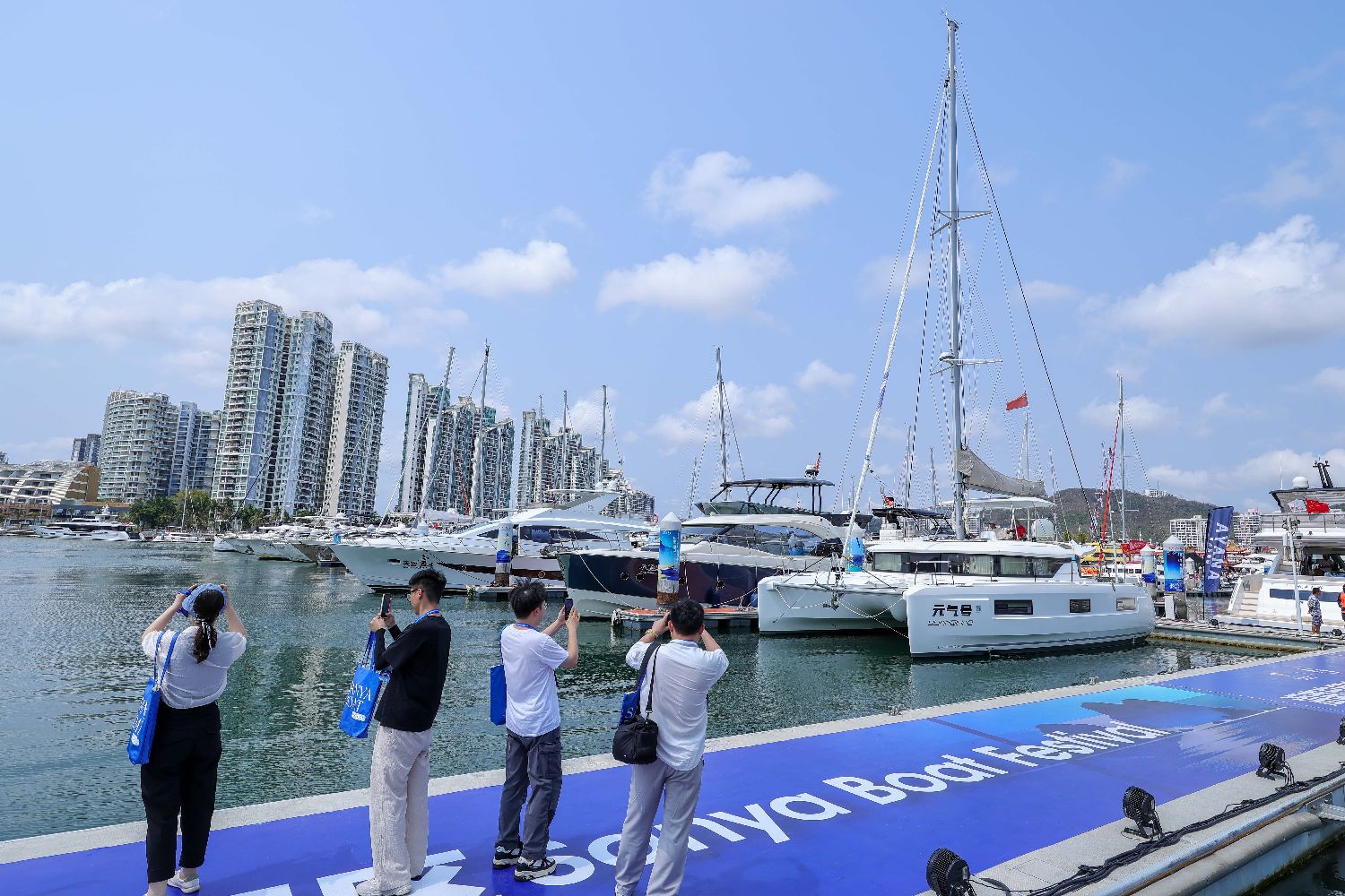 4月16日,设在三亚国际游艇中心的第六届中国国际消费品博览会三亚国际游艇分展区,观展者络绎不绝。本次展会汇聚法国、意大利、英国、德国、美国等全球主要游艇生产国的头部品牌,90余家游艇及配套企业参展,24款产品首发首秀,超200艘船艇集中亮相,展会规模与国际化水平均创历史新高。图为在水域展区展出的游艇引来参观者。(图片来源:本文图片均来自中新社)