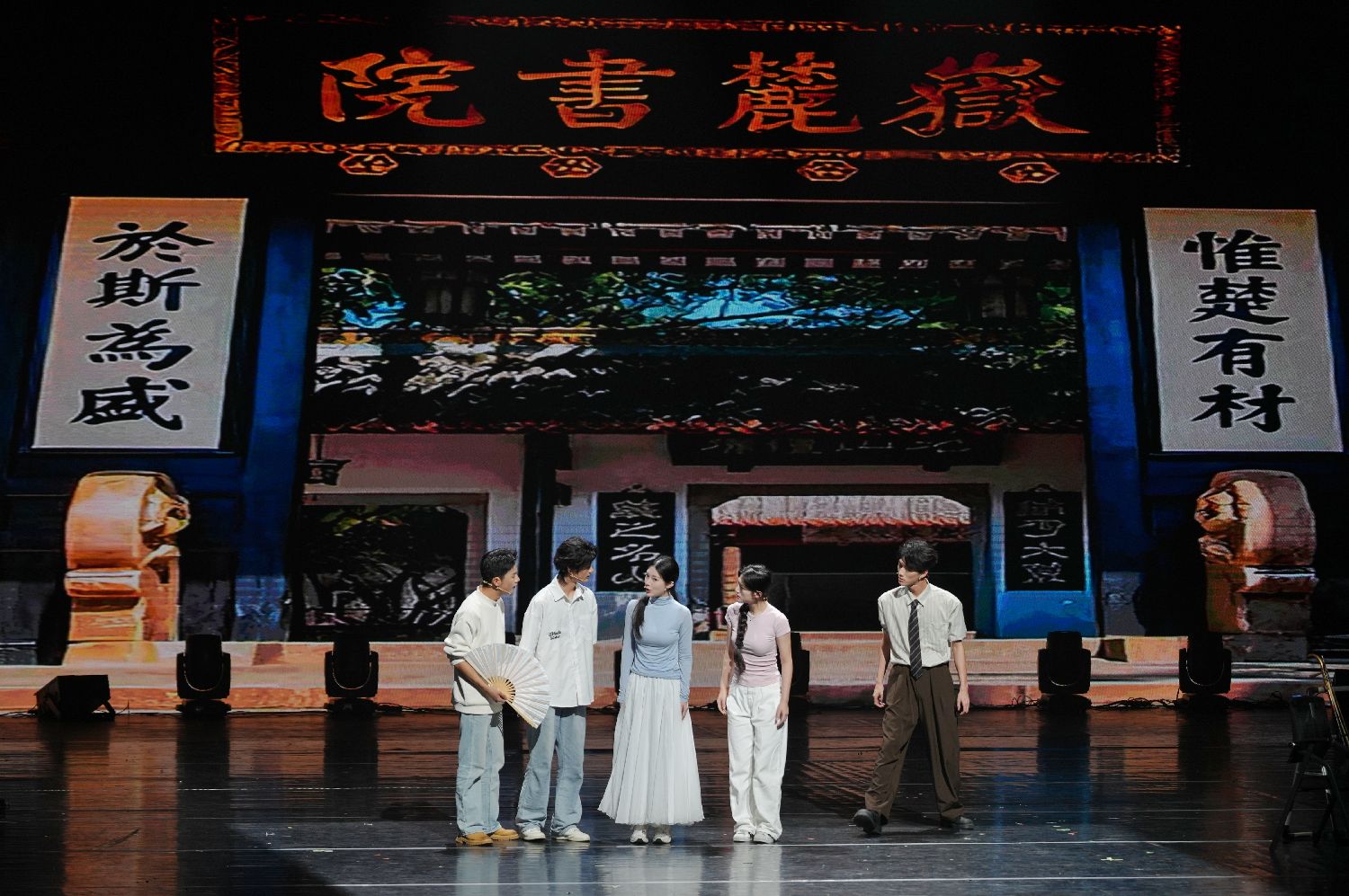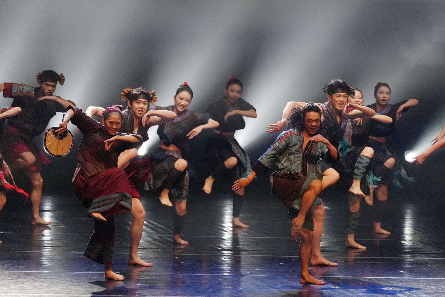 4月16日晚,《春在湘江》海峡两岸青年艺术交流汇演在位于长沙的湖南大剧院举行。图为《年年有鱼》侗族群舞表演。(图片来源:本文图片均来自中新社)