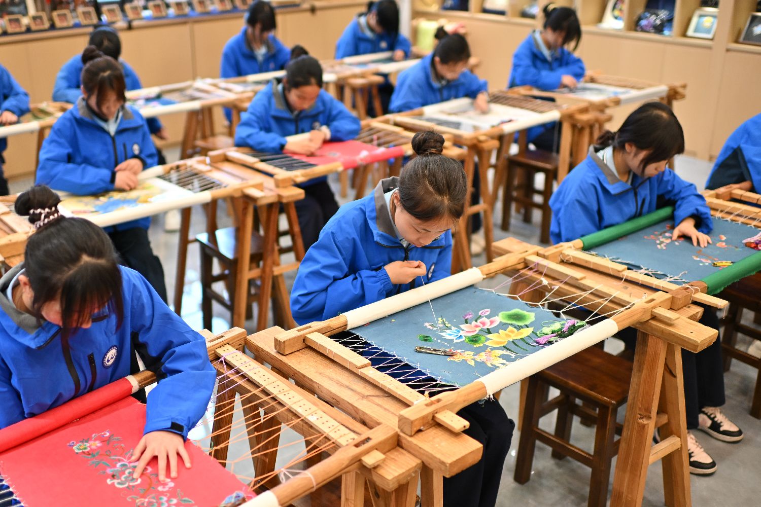 4月20日,学生们在秀山职教中心非遗文创基地学习苗绣。位于重庆市秀山土家族苗族自治县的秀山职教中心非遗文创基地,是以本土非遗为核心,打造集教学研修、文旅产品开发、传统技艺制作体验等多元功能于一体的公共文化传承平台。基地依托秀山职教中心办学资源,构建起完善的非遗传承体系,已建成龙凤花烛坊、非遗苗绣坊、西兰卡普织锦坊等14个细分非遗技艺传承工坊。同时,基地还邀请非遗代表性传承人驻校教学,将非遗技艺融入职业教育课程体系,推动非遗在校园实现活态传承、创新发展。(图片来源:本文图片均来自中新社)