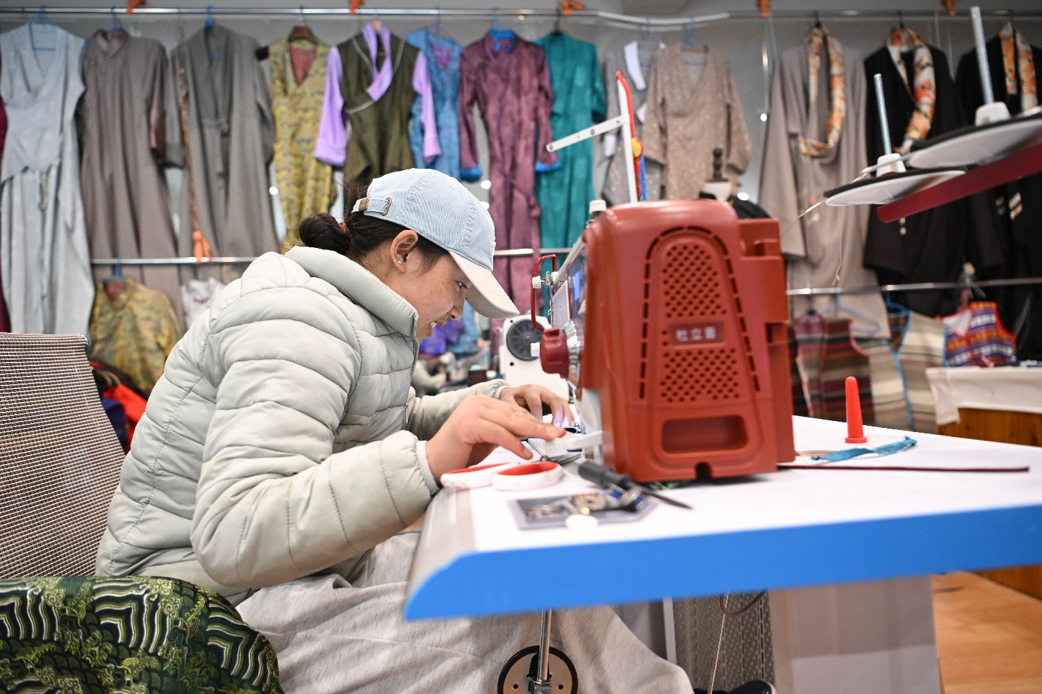 4月21日,西藏雪堆白技工学校学生在制作藏装。西藏雪堆白技工学校开设唐卡、雕刻、金属锻造等课程,免费招收西藏农牧区青年,以产学研创融合模式传承藏民族传统手工艺,培养出数千名非物质文化遗产代表性传承人。作为西藏首批民办技工学校和中国国家级非物质文化遗产保护基地,雪堆白正推动藏文化产业化发展,助力乡村振兴。(图片来源:本文图片均来自中新社)