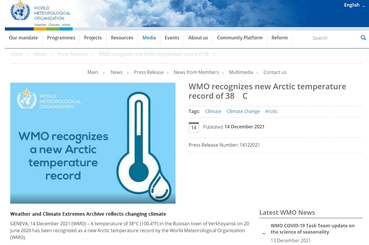 世界气象组织的声明指出,这一高温读数是在一场异常持久的西伯利亚热浪中由当地一个气象站测得到的,“这个温度更应该出现在地中海地区,而非北极”。