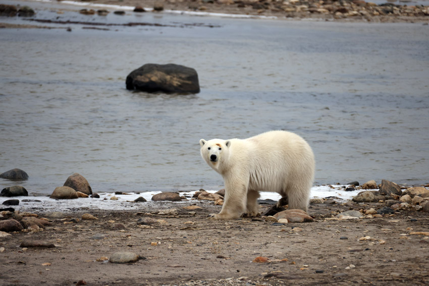 地处北极地区的加拿大曼尼托巴省丘吉尔镇今年遭遇暖冬,哈德逊湾沿岸水面到11月下旬仍未结冰。图为11月10日,一只北极熊在哈德逊湾觅食。(图片来源:中新社)